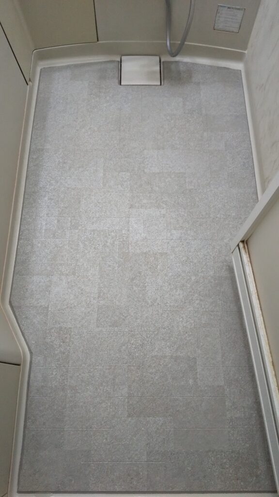 ユニットバスの床に東リのバスナリアルデザインを施工しました。